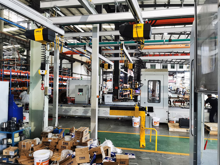 使用時,立柱下端通過地腳螺栓固定在混凝土基礎上,連接好相應的電源線、控制線,依靠控制手柄控制懸臂的回轉、吊鉤的升降和小車的行走,實現物品的轉移,具有、節能、省時省力、靈活等特點,三維空間內隨意操作,在短距、密集性調運的場合,比其它常規性吊運設備更顯示其優越性。